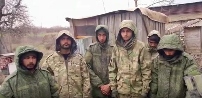 The men’s experiences of the front line paint a brutal picture of an army already in decline and snowballing downhill really fast. Command and control enforced by threat of execution. Troops forced at gunpoint to run at heavily defended Ukrainian positions. Constantly hunted and killed by drones. Commanders selling postings to the rear for money. Medical documents which ensured a departure from the war sold for cash by officers. Suicides, mental breakdowns, rife use of narcotics, torture. Several of the Indian returnees broke down when talking about their fellow men being raped by Russian soldiers at the front.