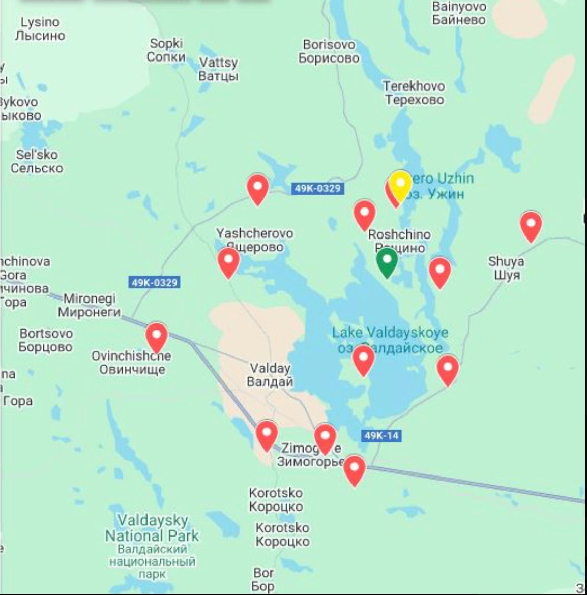 The green marker is Vladimir Putin’s lakeside Valdai residence. The red markers are Air Defence (AD) positions sited to cover and protect the residence from Ukrainian drone, missile, or jet attacks. The yellow marker is the S-400 Triumf, Russia’s advanced mobile long-range surface-to-air missile (SAM) system, designed to detect and destroy aircraft, drones, and missiles up to 400 km away. In 2023/2024 there were only 2 AD systems in this area. So, a massive increase to say the least.